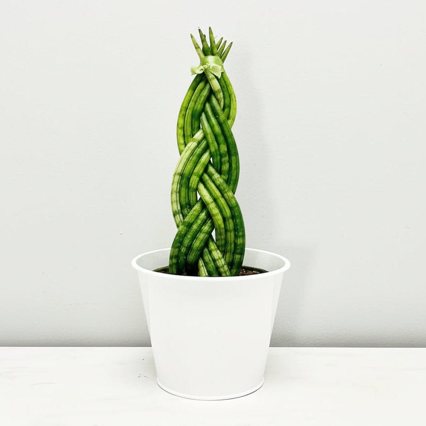 This striking plant features upright, cylindrical leaves that are carefully braided together to form an elegant sculptural display. Its deep green, spear-like foliage adds a bold, modern touch to any home or office. Low-maintenance and air-purifying, this plant thrives on neglect — perfect for busy lifestyles or first-time plant owners.