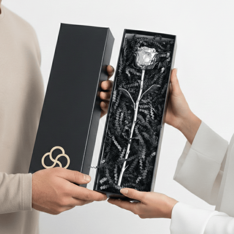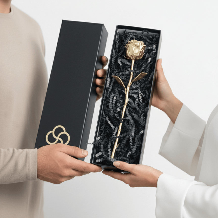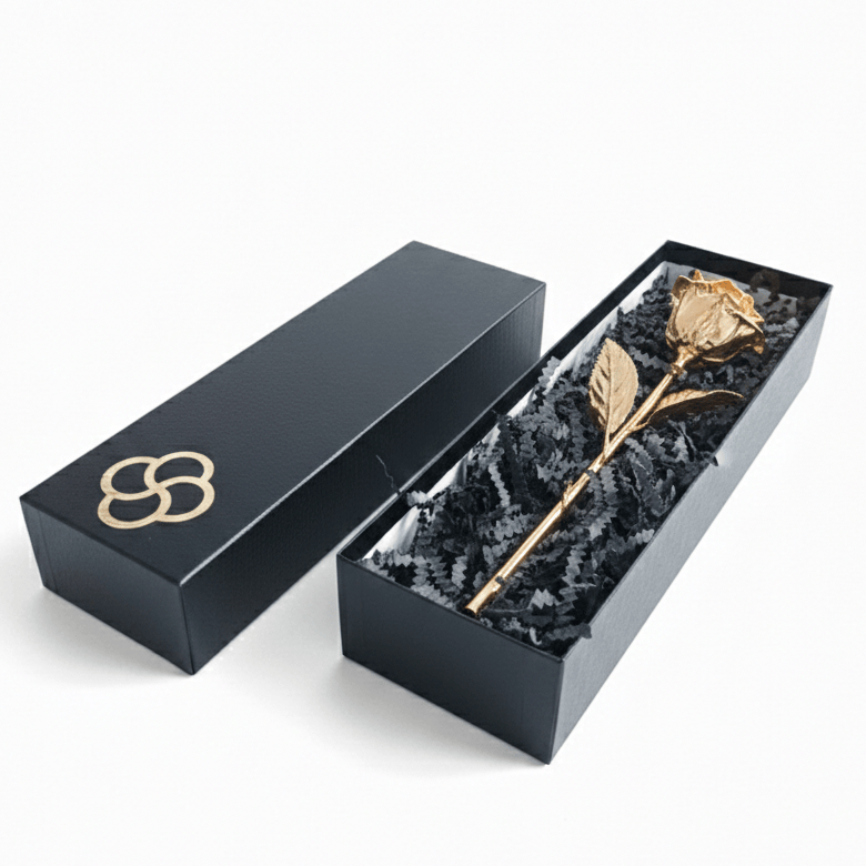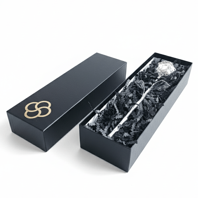 Protected Beauty: The rose is nestled in premium black crinkle-cut fill, ensuring it stays secure and looks beautiful upon opening.