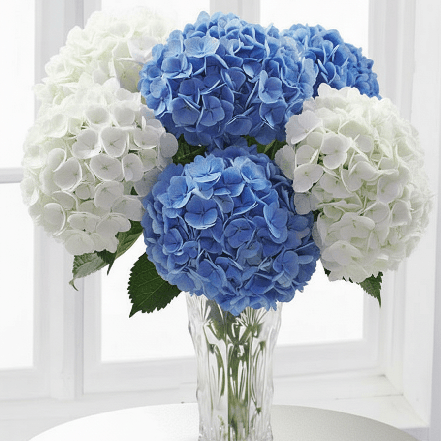 Our Hydrangea bouquet is a radiant arrangement crafted with five stems of exquisite hydrangeas. This positively charming ensemble serves as the perfect accent to brighten up any room, infusing both space and spirit with their unparalleled beauty and delicate fragrance.