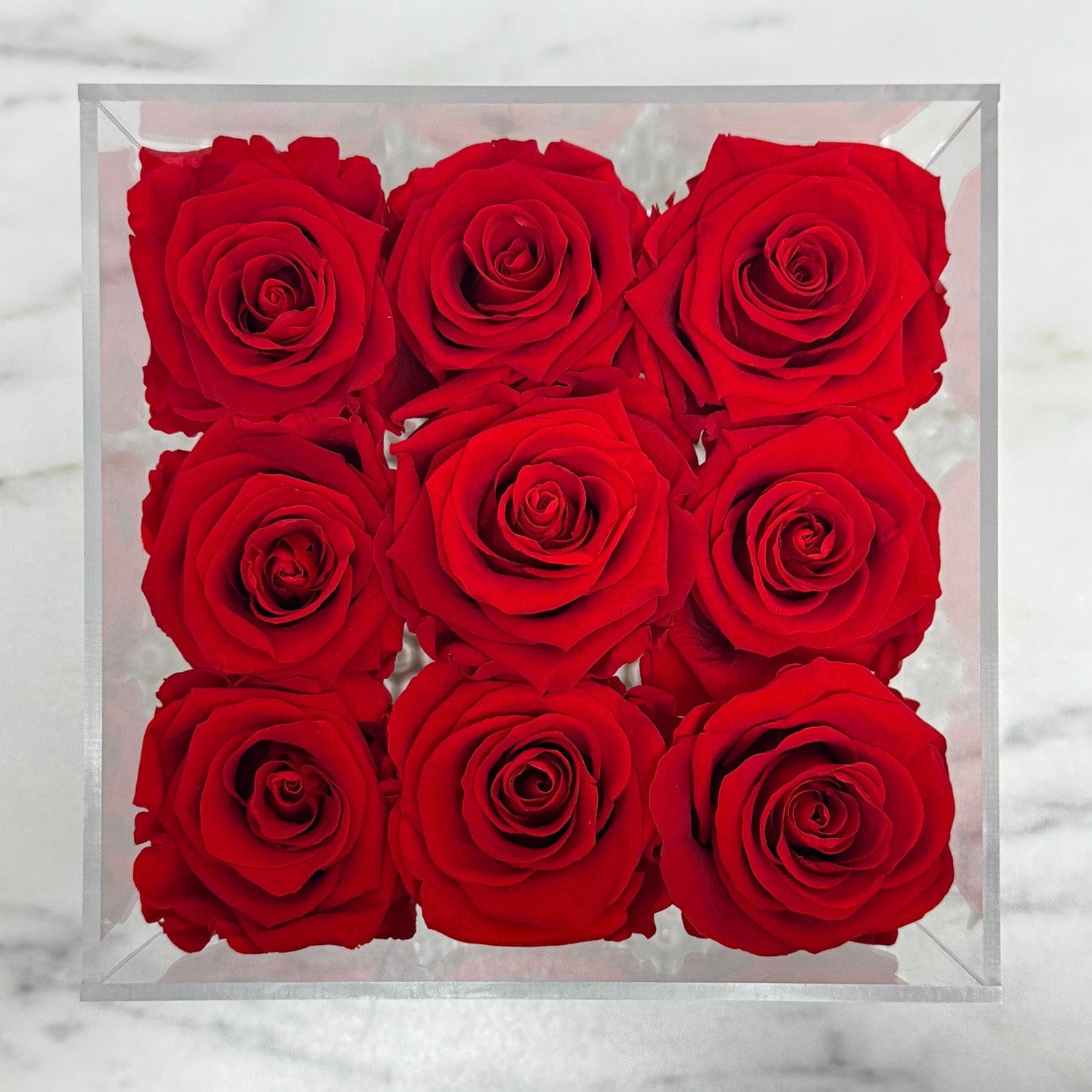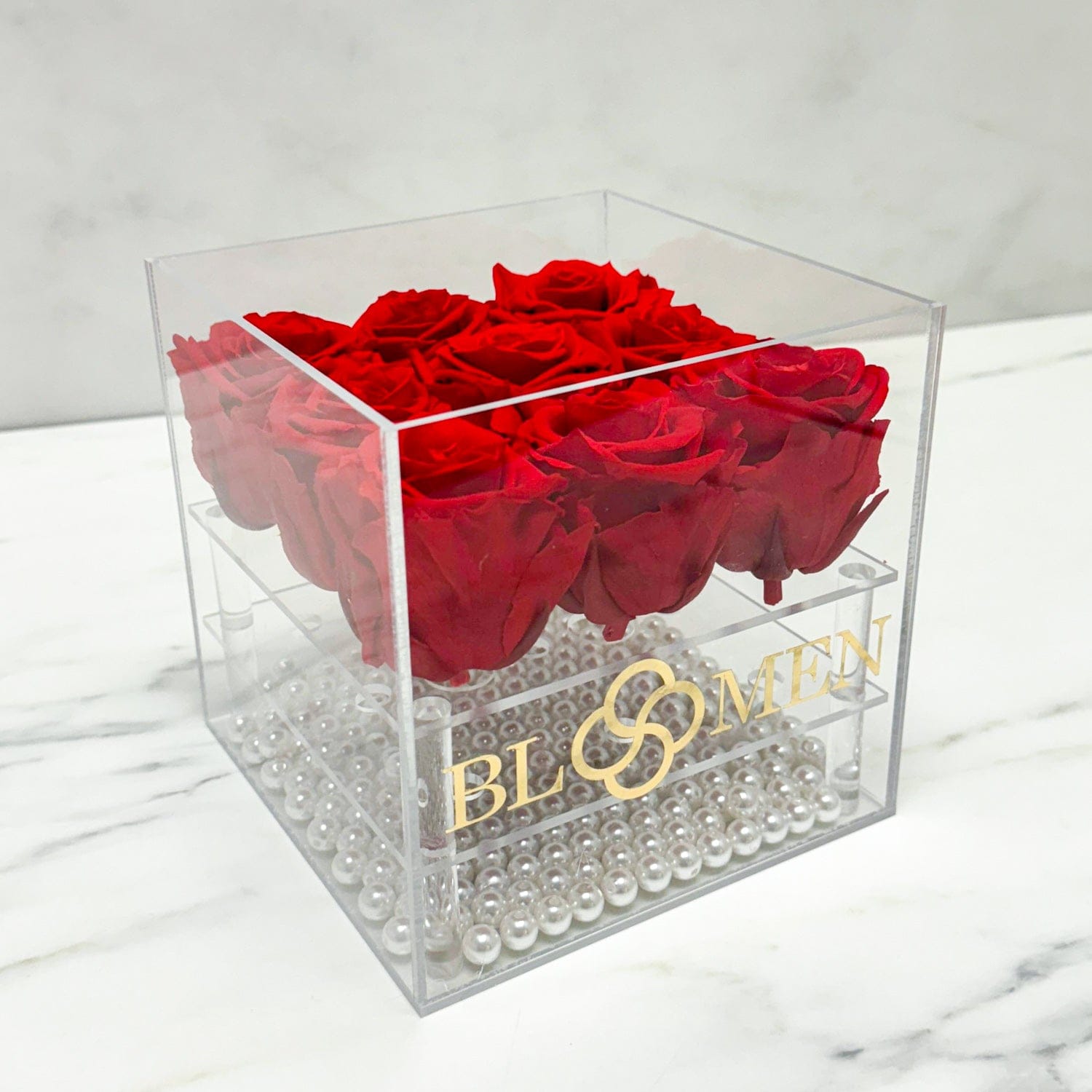 Real roses picked at their most beautiful then preserved to maintain their natural shape , colour and brightness, Bloomen's Everlasting Roses last up to one year. Beautiful roses in a clear case made this modern arrangement a great way to showcase your love.