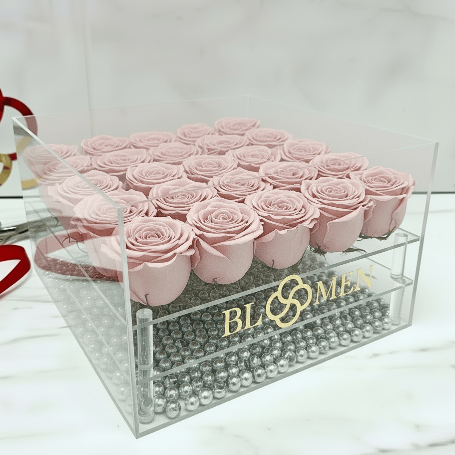 Each real rose is hand-selected at its peak and carefully preserved to maintain its natural shape, colour, and radiance. Bloomen’s Everlasting Roses last up to one year, beautifully presented in a modern clear case that highlights their soft elegance.