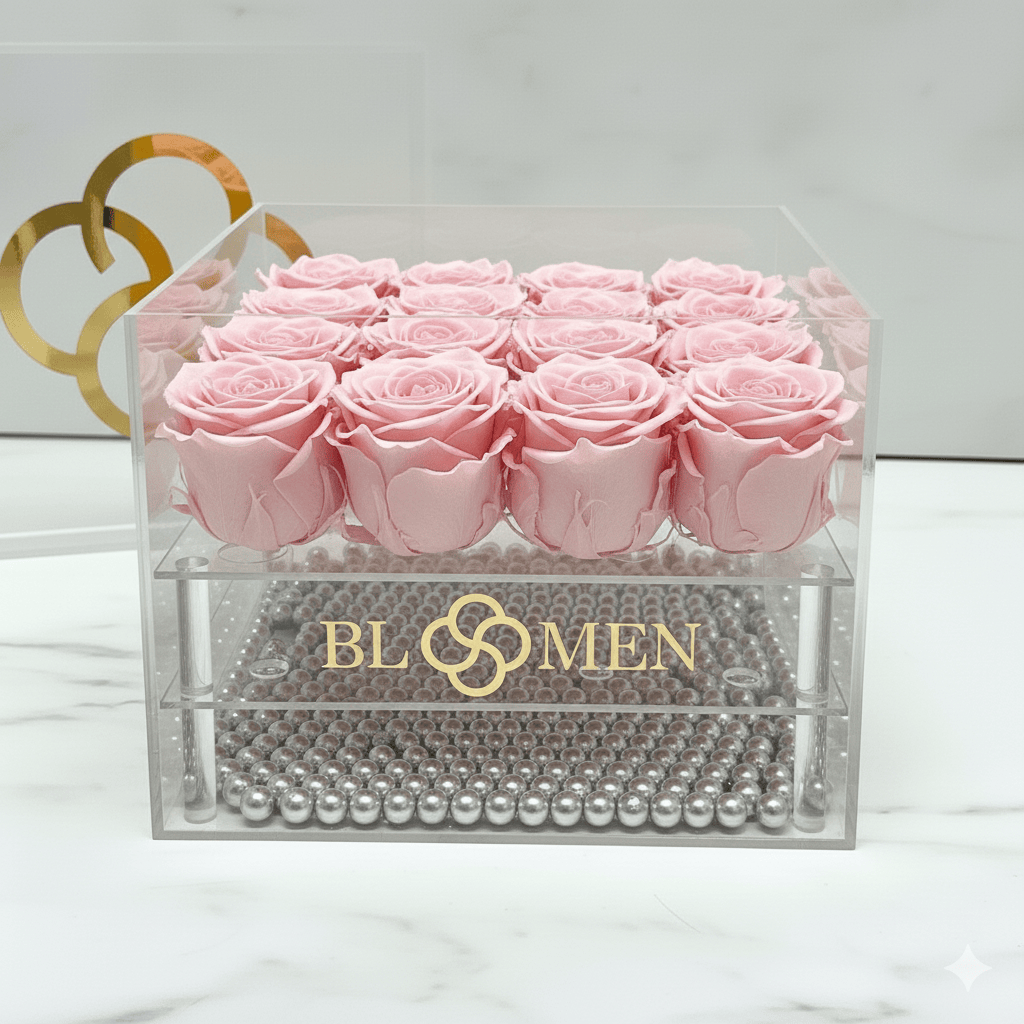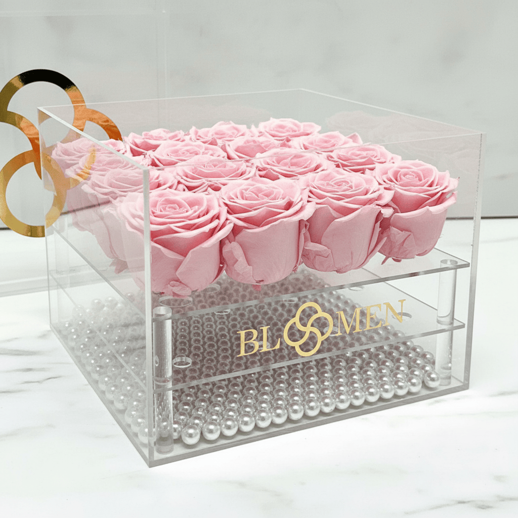 Real roses picked at their most beautiful then preserved to maintain their natural shape , colour and brightness, Bloomen's Everlasting Roses last up to one year. Beautiful roses in a clear case made this modern arrangement a great way to showcase your love.