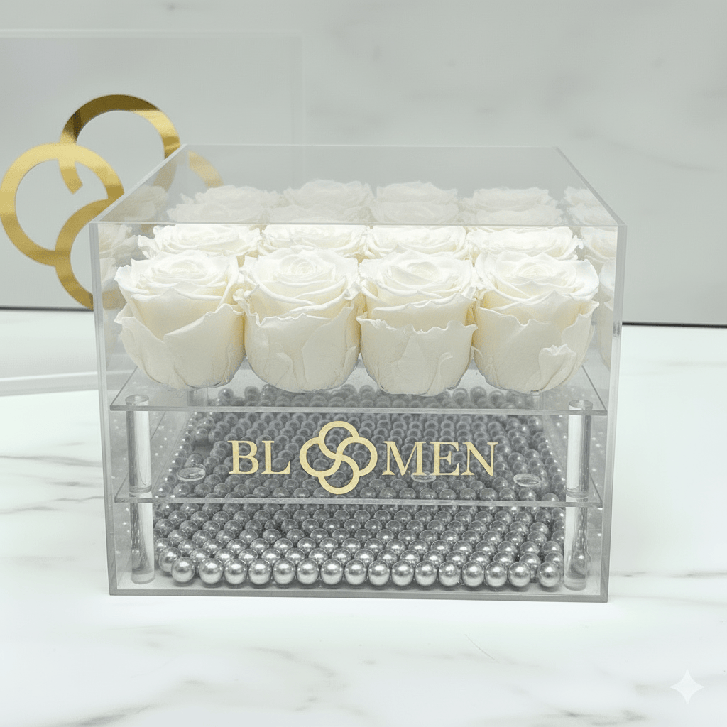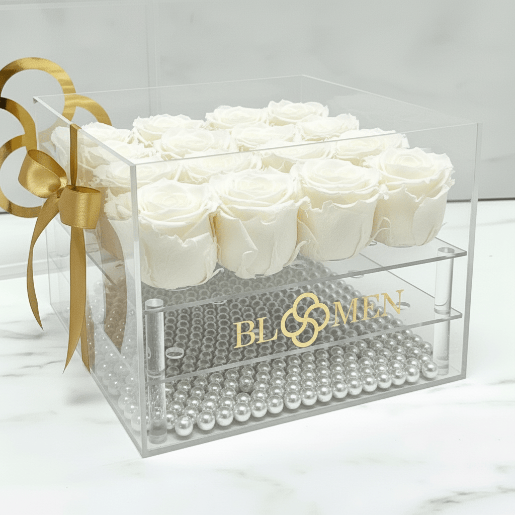 Real roses picked at their most beautiful then preserved to maintain their natural shape , colour and brightness, Bloomen's Everlasting Roses last up to one year. Beautiful roses in a clear case made this modern arrangement a great way to showcase your love.